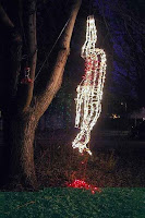 I do the lights all by myself and always have. My husband hates Christmas lights and refuses to participate in putting them up on our house. In fact he hates all Christmas decorations. I’ve accused him of being a secret Muslim, he is such an anti-Christmas-decor-ite. Sometimes while I’m up on a ladder with lights strung around my neck, struggling to get to a high branch, he’ll come out with a cup of coffee, remark at how “freezing” it is outside, and say hello.