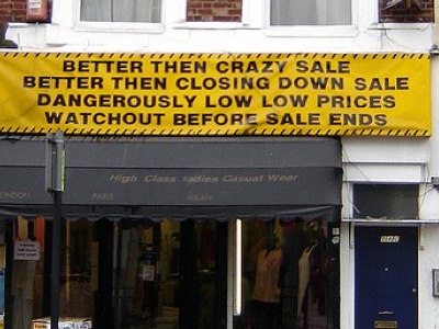 “Everything 75% Off Original Price” the signs said. They had roped off most of the store and huddled together what they were selling off into one area. It was a sea of bad colors, outdated fabrics and styles from the mid-‘80s. You really had to work for that 75% off, and you know, I’m just not into that kind of effort. I did spend some time digging through one pile and managed to find a Jones of New York white blouse for a few dollars, regularly priced at $69. And a festive, Christmasy red shimmering top for another couple of dollars, regularly priced at $98. I’m not into designer clothes, so I didn’t recognize the name, but the tag was pure fanciness, so I’m pretty sure it was a good deal. I looked like one of the home entertaining hostesses in a December issue of Bon Appetit when I put it on. So I obviously had to buy it.