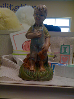 Well, hello little guy! What are you doing so close to the edge there? Back up, little buddy! Move on back toward those dog tag wine charms and the cherub music box, sport!