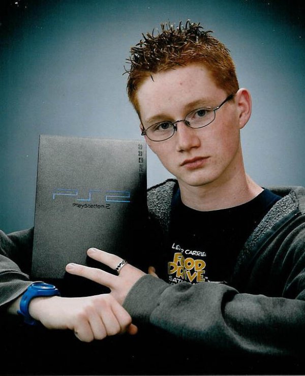Playstation II and the blood drive t-shirt . . . “Do you think my senior portraits will date me?”