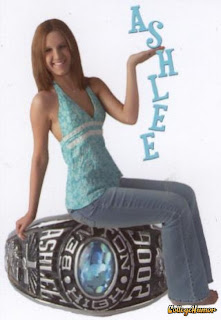 “Be a sport, Ashlee, and sit on the giant class ring. Now, put your hand where you think the S will be.”