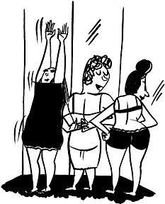 When I was a teenager there was no such thing as shoplifting. Not because we were any less idiotic than today’s teenagers. But because when we went into a dressing room, we had a friendly store clerk opening up the curtain, poking her head in and saying, “How did that work out for you, hon?” How do you think it’s working out? I’ve got the dress stuck on my shoulders with my arms trapped in a criss-cross across my throat. It’s working out grand. I’ll take two of these. More. Bring me more.
