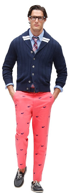 This is the same sweater as worn by the guy in the boat, but Clark Kent here had the foresight to pair it up with the pink playful whale fun pants.