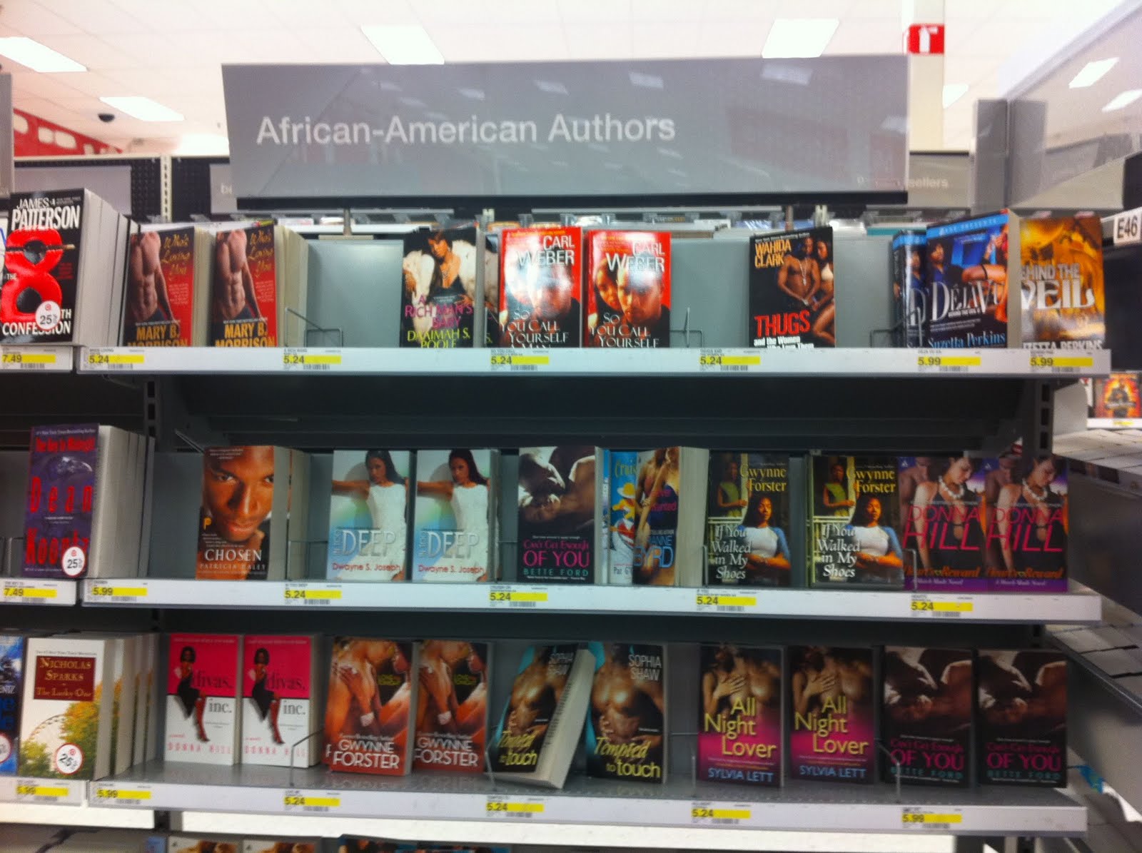 I couldn’t believe my eyes when I saw this in Target. Segregated books? Especially since it had been all over the news about Walmart separating out “black books” from “white books.” If it’s written by a African-American author and it’s about African-American characters, let’s put it with others of its kind, where it will be happiest. Walmart got bitch-slapped by the media for doing it. Target, apparently not wanting to reorganize its entire book department, came up with a solution: Fill its Recommended Reading shelf with all African-American authors, too: