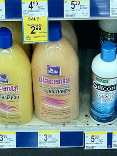 Ah, placenta shampoo and conditioner! Just what the Guatemalan obstetrician ordered.