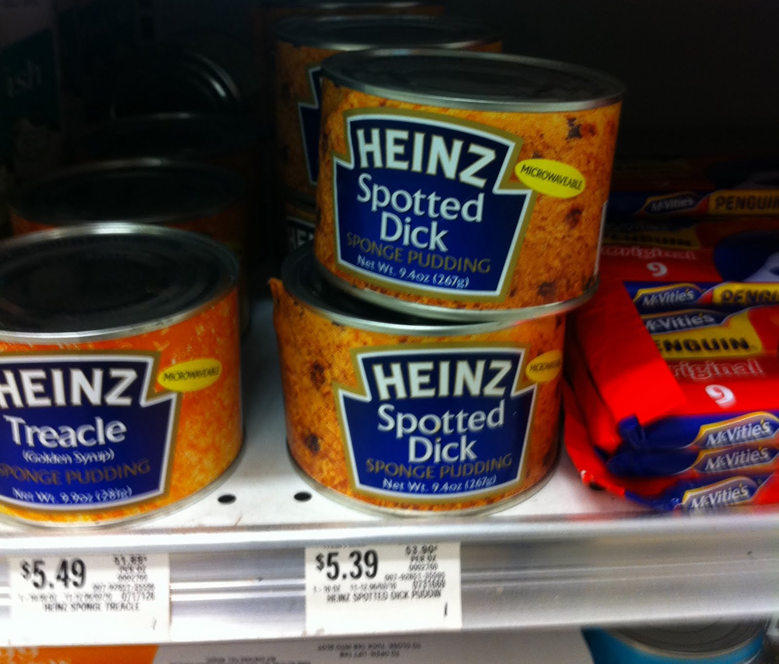 It’s getting hard to leave the grocery store without visions of penises in your head. Come on, Brits, you can’t think of a better name for pudding in a can? How about “Treacle?” (Sometimes I think the English just want to be difficult.)