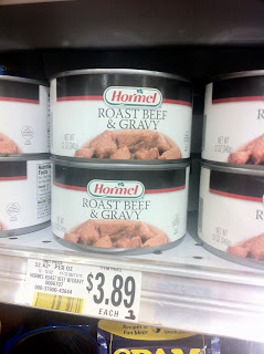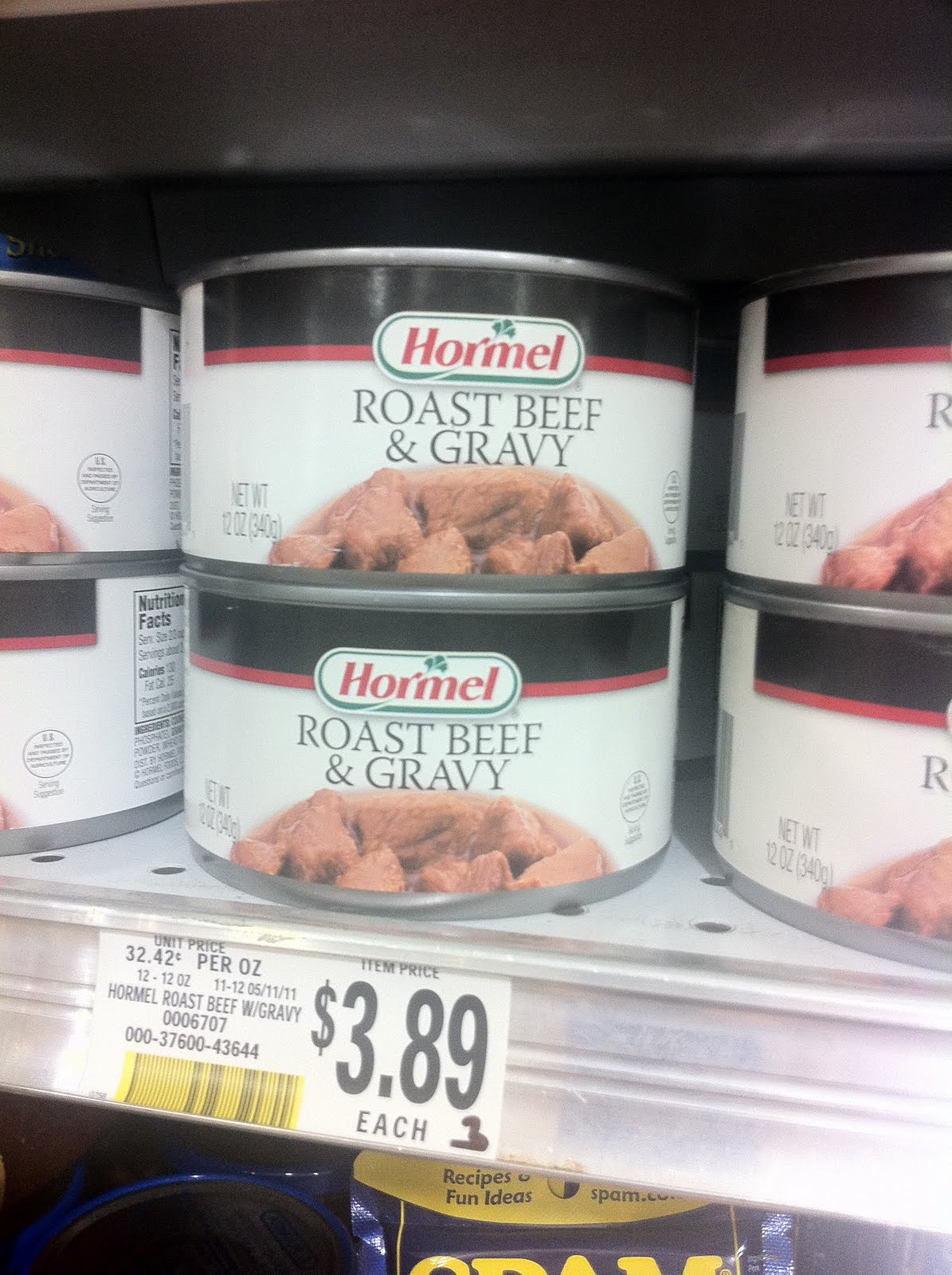 Canned meat is just not necessary. Unless you’re a soldier in Napoleon’s army or a survivalist living in Arizona and are planning to hide out in your underground lair until the second coming is over, what’s the point? This Hormel Roast Beef and Gravy looks more like dog food than dog food. And $3.89? Really? Good luck with that.